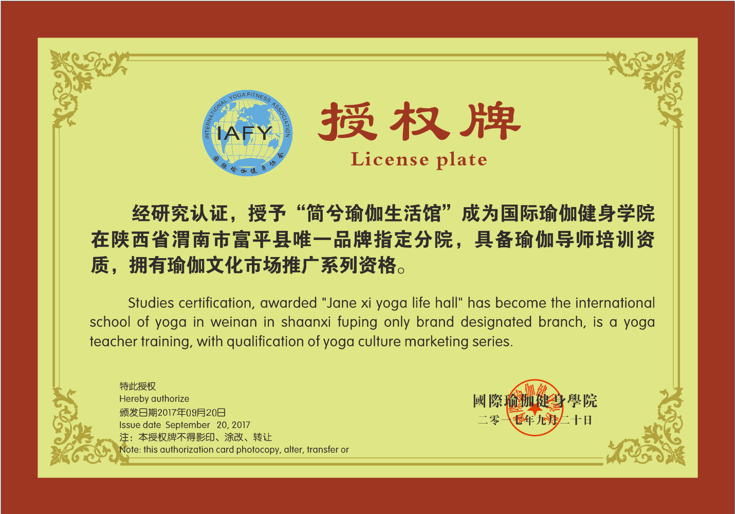 国际瑜伽健身学院陕西省渭南市富平县培训基地—“简兮瑜伽生活馆”