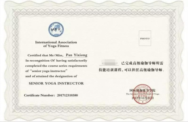 在瑜伽树瑜伽会馆教练培训班毕业后获得国际瑜伽联盟学院权威证书